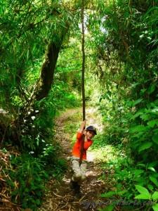 Au détour d’un chemin, nous croisons le fils de Tarzan, content de nous faire une démonstration.