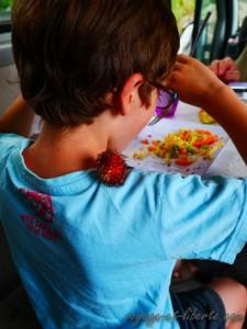 Ensuite, coiffeur pour Jérôme et Charles qui commençaient à ressembler à capitaine caverne et qui présentent désormais une forte ressemblance avec Mireille Mathieu (enfin, surtout Charles avec sa frange bien droite et sa coupe au bol). Surprise ! Pour laver les cheveux des enfants, on ne les assied pas dos au bac à shampoings, on fait mettre l’enfant à genou tête première dans le bac (genre « je vais vomir, passe moi une bassine ») ! Evidemment le tout a fortement déplu à Carlito qui 1) n’était pas malade à vomir 2) s’est fait laver les cheveux, les yeux et les dents en même temps !