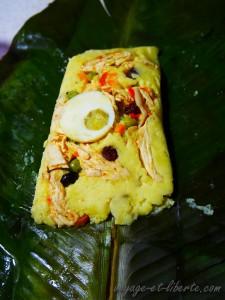 On cuisine aussi le maïs en tamales ou humitas, les premières étant constituées d’une bouillie de maïs sucrée (comme en Bolivie), les secondes d’une bouillie de maïs salé avec du poulet, des œufs durs, des raisins secs. Pas mauvais …