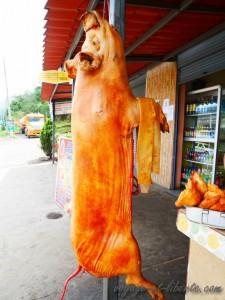 Bien sûr chaque région a ses spécialités, comme les larves de palmiers ou le poisson de rivière en Amazonie, mais globalement la patate, le riz, le « choclo con queso » (un épis de maïs bouilli vendu avec une tranche de fromage élastique et très salé, comme au Pérou), le manioc, la banane plantain et le porc rôti ou frit restent les aliments de base d’une alimentation assez rustique.