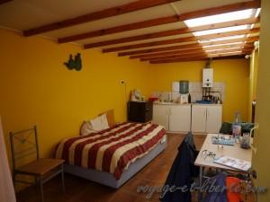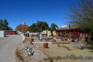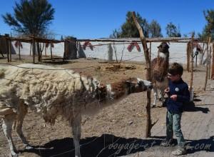 Tout y était : de la poussière pour se rouler dedans, des arbres pour grimper, des bâtons pour faire des épées et des lances, un bric à brac innommable pour s’amuser, des cachettes, des animaux à nourrir et caresser , un bungalow spartiate sans chauffage (il fait 1 ou 2 degrés la nuit, dehors et une dizaine dedans) mais « tellement plus rigolo que le fourgon », une excuse béton pour ne pas se doucher (« papa et maman, nous sommes dans un désert, l’eau est rare, alors je ne vais pas la gaspiller en me lavant !! »), de nombreuses occasions d’aller manger des frites au resto, de prendre le taxi … et le temps devant nous pour profiter de tout cela !! Demandez-lui, il ne vous racontera pas du tout la même histoire que moi sur notre semaine à Calama ! Comme quoi, une situation identique peut-être perçue de façon très différente par ceux qui la vivent ensemble !!