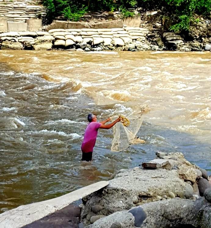 En plus, la direction n’embêtait pas trop sur le port du masque dans les zones communes. Heureusement car avec cette chaleur humide il nous collait au visage, le rendant immédiatement dégoutant et malsain à porter, un vrai nid à microbes. J’admire vraiment les habitants de ces zones chaudes qui tous, sans exception, se le coltinaient dans les rues. Quel décalage cependant entre cette exigence et la vie des pêcheurs plongeant dans le Rio Magdalena en furie ou se maintenant sur des barques précaires pour faire vivre leurs familles… Supuestamente protégés d’un dangereux virus par un tapaboca en papier, mais abandonnés dans les eaux déchaînées … Cherchez l’erreur …
