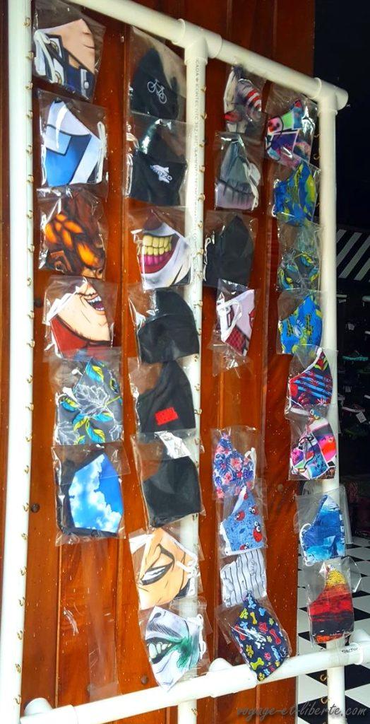 C’est finalement l’occasion d’y retourner, depuis plus de 8 mois que nous n’y avons pas mis les pieds. Premier constat : il y a plein de commerces et restaurants qui n’ont pas survécu à la quarantaine ou plutôt à la « simoizaine ». Deuxième constat : en ville, le port du masque est respecté scrupuleusement et c’est même devenu un business juteux pour certains et un accessoire de mode pour tous les autres. On en trouve de plein de sortes : des rigolos, genre masques de carnaval, des fashions, des « casquettes-masques », enfin, des trucs de fous hihi. C’est trop laid hihi