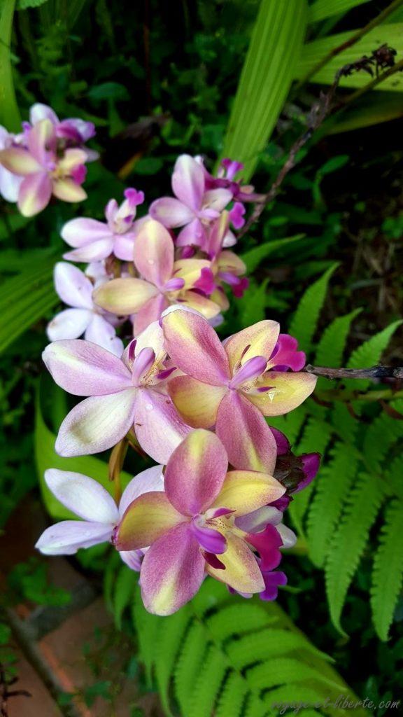 Le lendemain, mauvaise nouvelle. Le Parc National des Nevados que nous souhaitions visiter est toujours fermé, tout comme, plus loin, le jardin botanique d’Armenia qui ne rouvrira pas avant le 19 décembre. Par chance, l’hôtel propose une magnifique visite (payante) de son domaine, alliant montée en télésièges, serre de papillons, refuge pour colibris, jardin de bonzaïs et forêt d’orchidées. C’est avec joie que nous nous offrons le tout, commenté par un guide lui-même vêtu comme un décontaminateur de site nucléaire ! Je ne sais pas s’il faut mourir de rire ou pleurer à chaudes larmes …