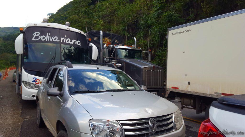 La route, parlons-en ! La autopista Medellin-Bogota, route principale du pays, est toujours aussi dégueulasse. On dirait presque un chemin montagnard avec son lot de folklores locaux : trous, glissements de terrain, caravanes de camions et, cerise sur le gâteau, bandits de grands chemins dépouillant les voyageurs. Coup de bol pour nous : nous parvenons à nous glisser entre un gros éboulement, déblayé la veille, et une attaque de grande ampleur des véhicules circulant, survenue le lendemain. Comme quoi, si on jouait au loto, on pourrait peut-être gagner avec toute cette chance hihi